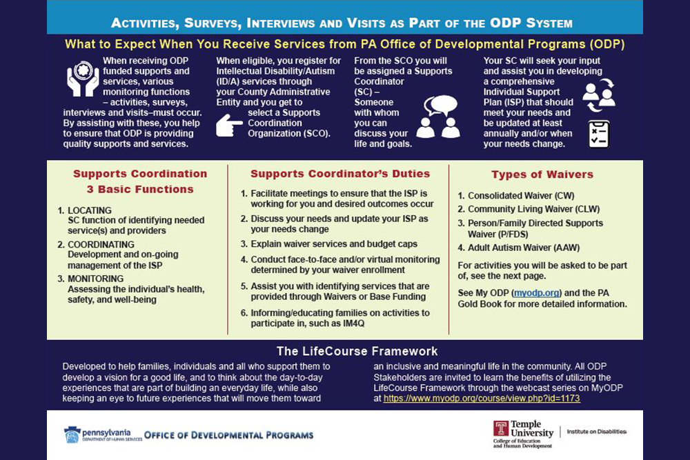 A quick guide to the Office of Developmental Programs (ODP) and services for Individuals with an Intellectual Disability, Autism, and Children with a Developmental Disability in Pennsylvania